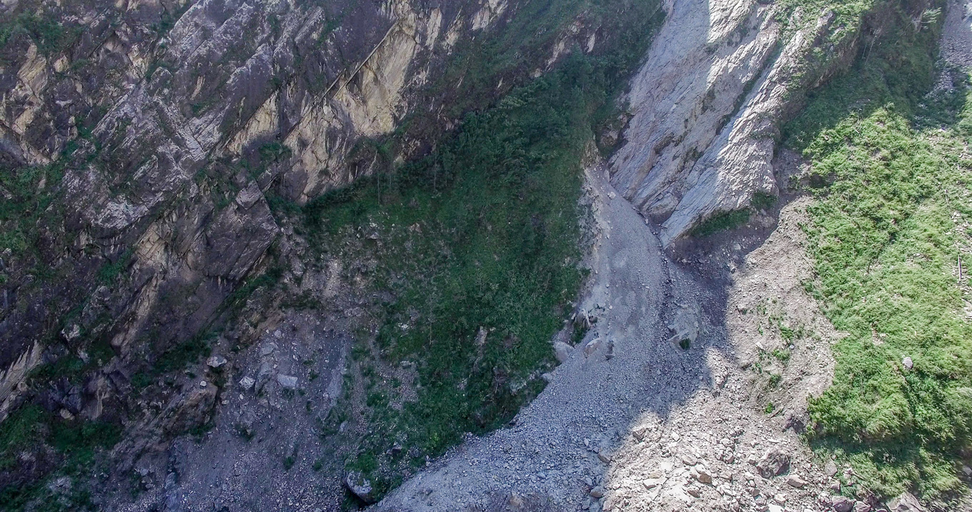 Description: Aerial video recording for identifying slope failure mechanisms.